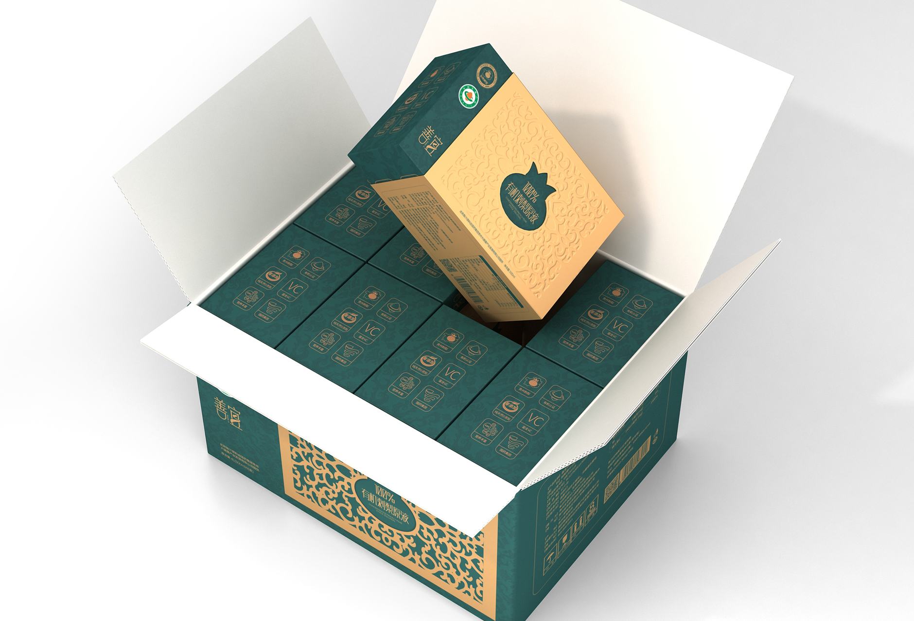 產(chǎn)品的受眾多注重養(yǎng)生、關(guān)注健康、年輕態(tài)的女性,她們擁有者較成熟的品味。 用傳統(tǒng)圖案搭配材質(zhì)和工藝,呈現(xiàn)出品質(zhì)感和中性感,更為符合她們的審美。 刺梨形態(tài)與金卡模切工藝結(jié)合,凸顯產(chǎn)品的物理屬性的同時(shí),體現(xiàn)產(chǎn)品為高端、高價(jià)產(chǎn)品。